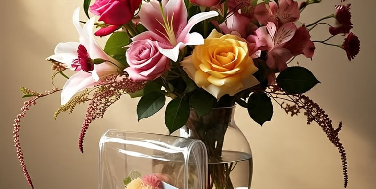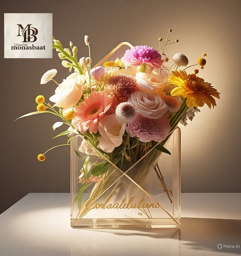 علبة أكرلك مودل رسالة مع باقة موسمية فاخرة