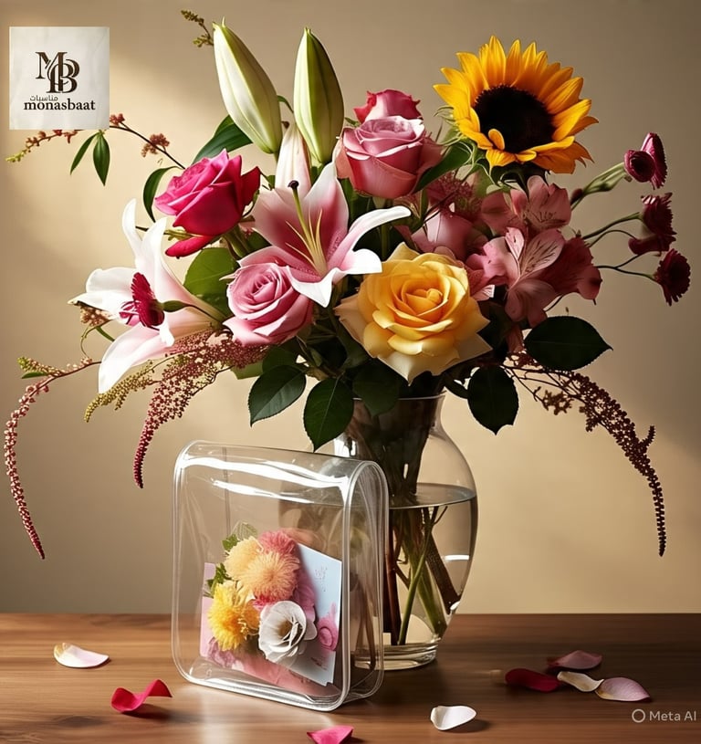 فازة فاخرة من ورد الروز الكيني ودوار الشمس الاندنوسي تضيف جزء من جمال الطبيعة الى محيطك